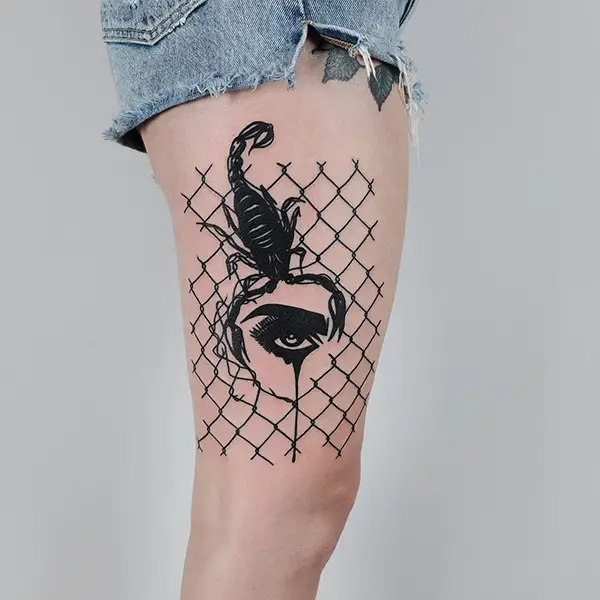 This is a bold scorpion tattoo that symbolizes determination and embraces the fire within you. It is a perfect way of showing your powerful personality.