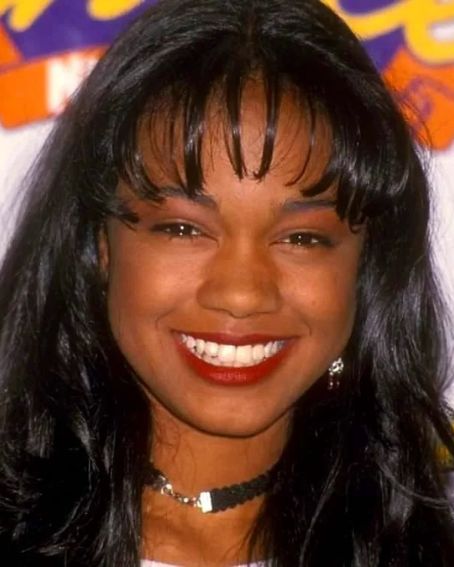 The cute smiling quien Tatyana Ali looks so adorable in this short black wavy hair style with bangs. The wavy hair adds to the beauty with a front bang and can be tried today to look beautiful.