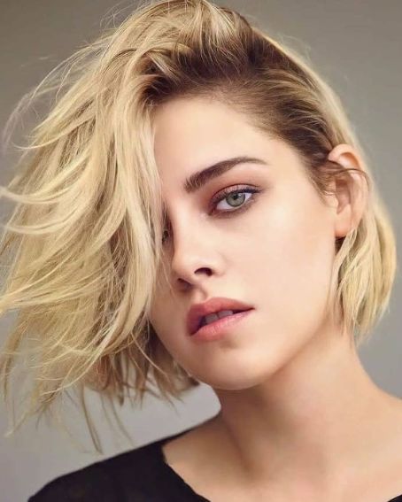 The fantastic pic of Kristen Stewart has been extracted from the place she got her Bob haircuts. This is so cute and pretty with the creamy hair vibes of brightness around with graduated bob in blonde with shaggy on top.