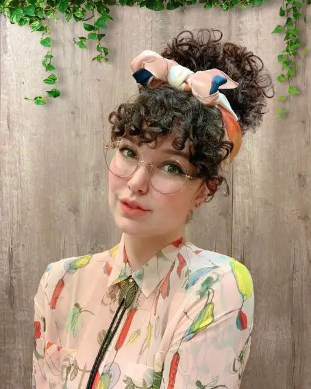 If you want to wear your hair in an updo but you also want to show off your beautiful face, then this curly updo with bangs is perfect for you. To get this look, simply curl your hair and then pin it up into a bun. Then, take a small section of hair from the front and let it fall down over your forehead in a soft, romantic curl.