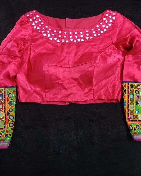 - Boat Neck Blouse With Mirror Work