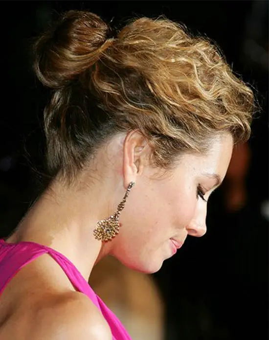 Jessica Biel’s medium-length updos often exhibit a playful yet sophisticated flair. She embraces textured waves, high buns, and side-swept styles that suit her dynamic personality.